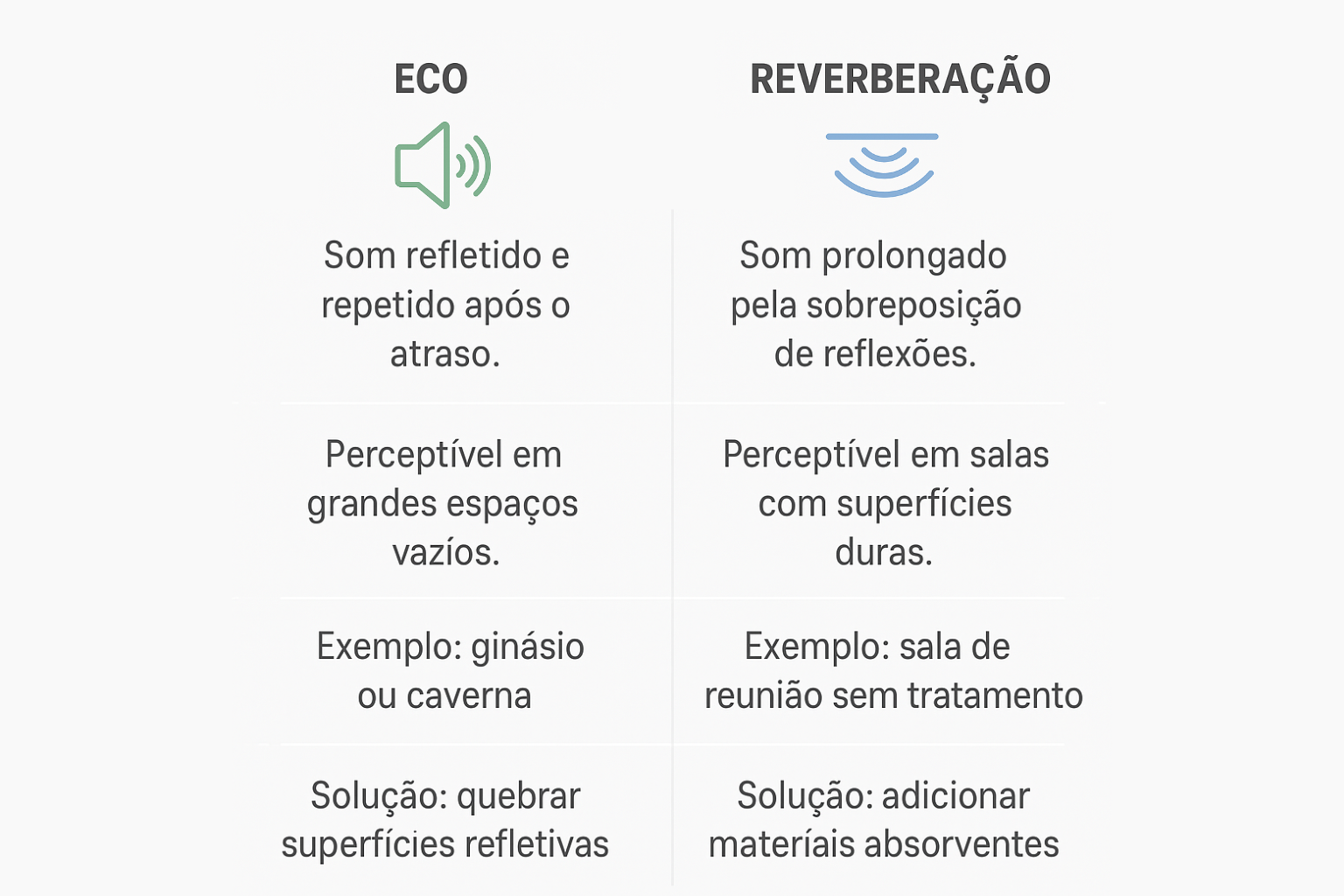 Embora pareçam semelhantes, eco e reverberação são fenômenos diferentes. E entender essa diferença é o primeiro passo para resolver o problema de forma eficiente.